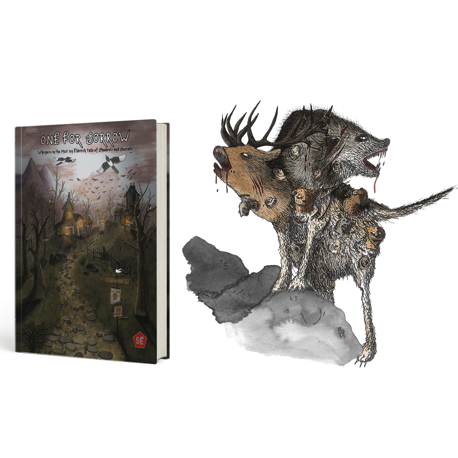 - Custom monsters and encounters complete with stat blocks and original artwork.